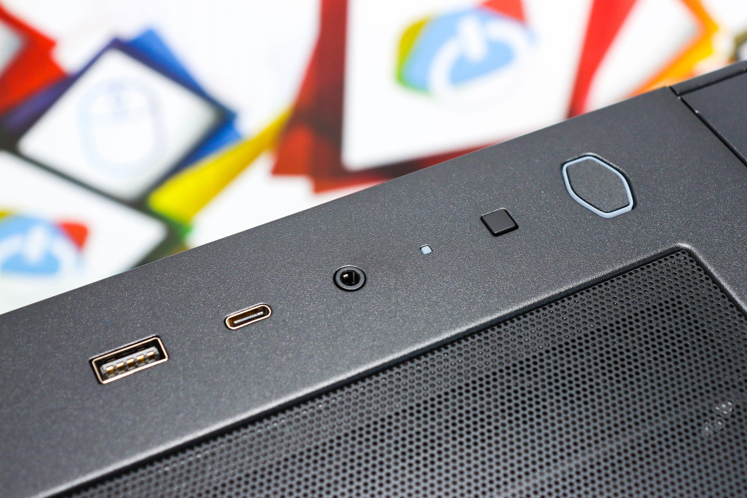 Prednji priključci: USB-A, USB-C, 3,5 mm audio + mic
