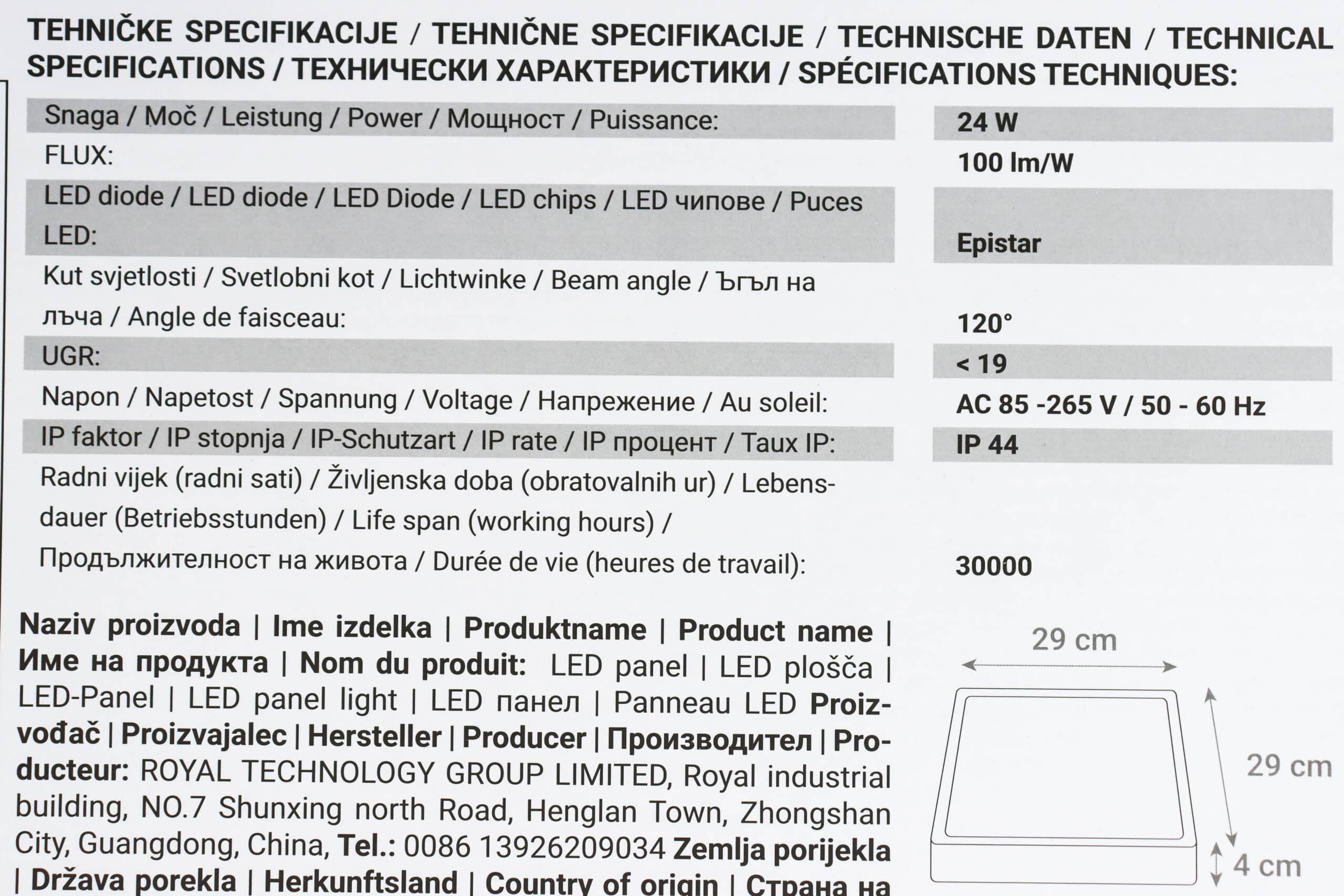 Dimenzije svjetiljke: 29 x 29 x 4cm
