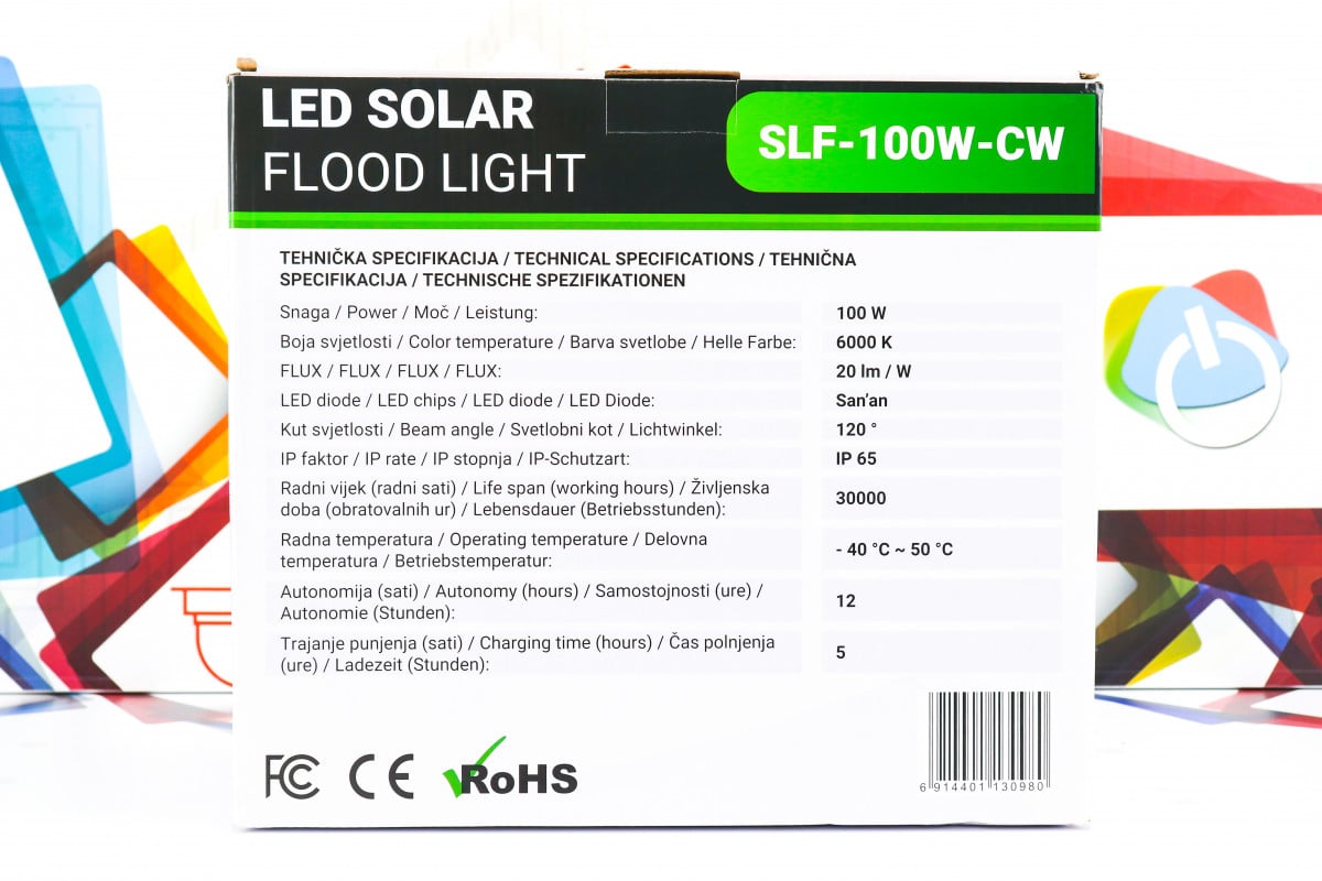 LED solarni reflektor 60W Green Tech SLF-60W-CW IP 65